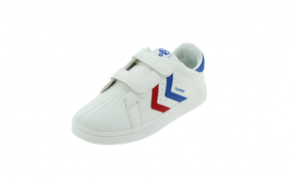 • Color blanco con detalles HUMMEL en azul y rojo.